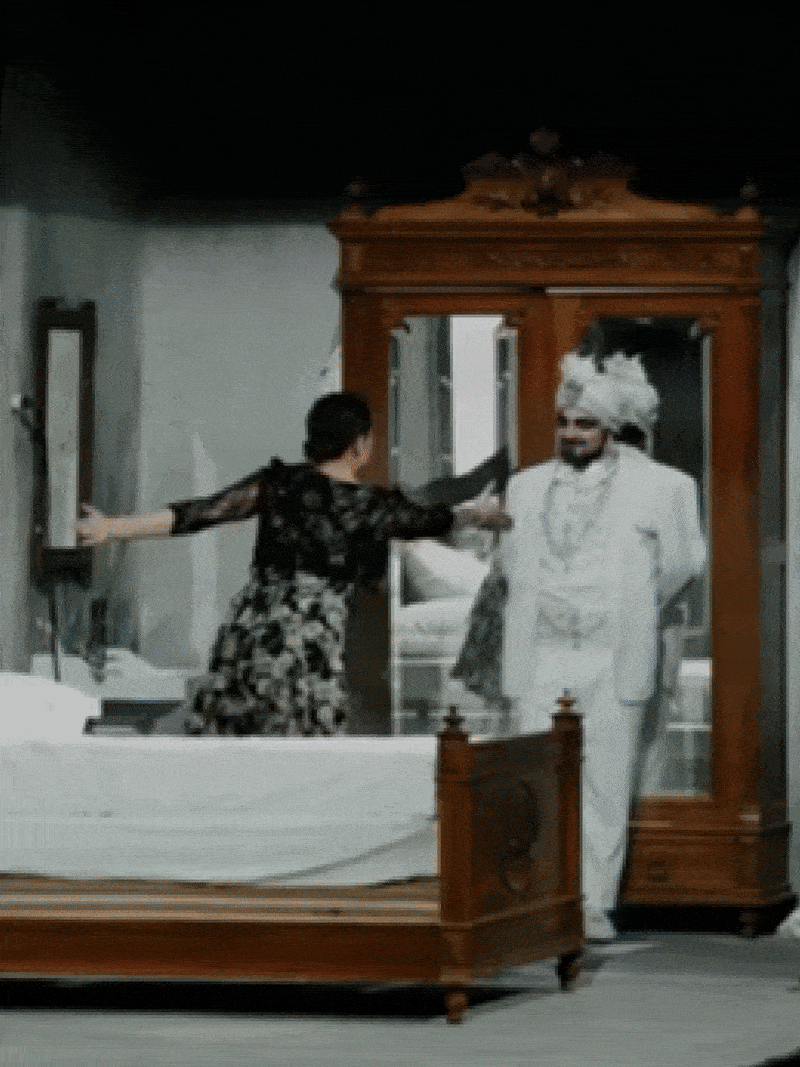 Le travail vidéo de Studio A+E devient un langage visuel neuf : entre ombres, éclats de contours, juxtapositions de textures et jeux de transparence, les projections reflètent l’ambiguïté du désir et la dérive du pouvoir. D’après les critiques, la vision scénique oscillait entre un « faux conte de fées et un vrai roman noir », dans lequel le personnage de Mamyrov, toujours affublé d’un casque de réalité virtuelle, introduit un conflit visuel et symbolique entre mondes tangible et numérique