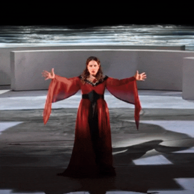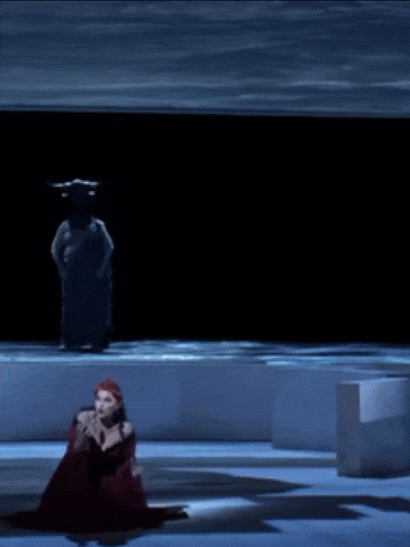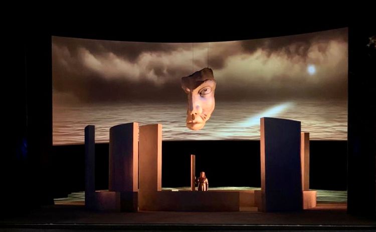 Dans cette mise en scène profondément symbolique signée Jean‑Louis Grinda, Idomeneo s’ouvre sur une fosse océanique dominée par un visage de Neptune suspendu au-dessus des flots déchaînés : un décor puissant qui donne le ton d’emblée. Le Studio A+E intervient avec des projections vidéo de la mer — tantôt apaisée, tantôt menaçante — qui nourrissent visuellement la tension entre destin et pouvoir divine dominants, sans jamais effacer l’émotion et la dynamique humaine portée par l’orchestre, les chœurs et la direction sensible de Fabio Biondi.