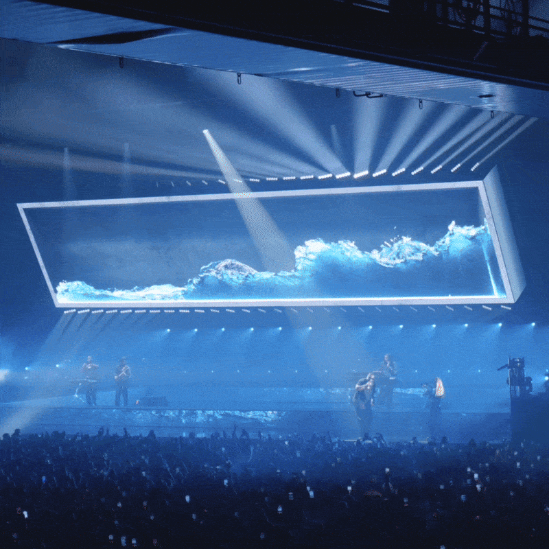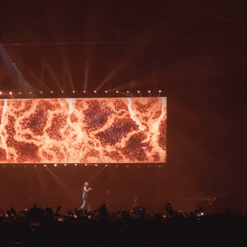 En jouant sur les volumes, les formes, les animations et les textures, Studio A+E a conçu pour certains morceaux une ambiance unique, en dialogue permanent avec l’énergie de SDM et la scénographie générale. Des visuels abstraits et immersifs aux séquences plus narratives, chaque projection a été pensée pour amplifier l’impact scénique et renforcer la connexion avec le public.